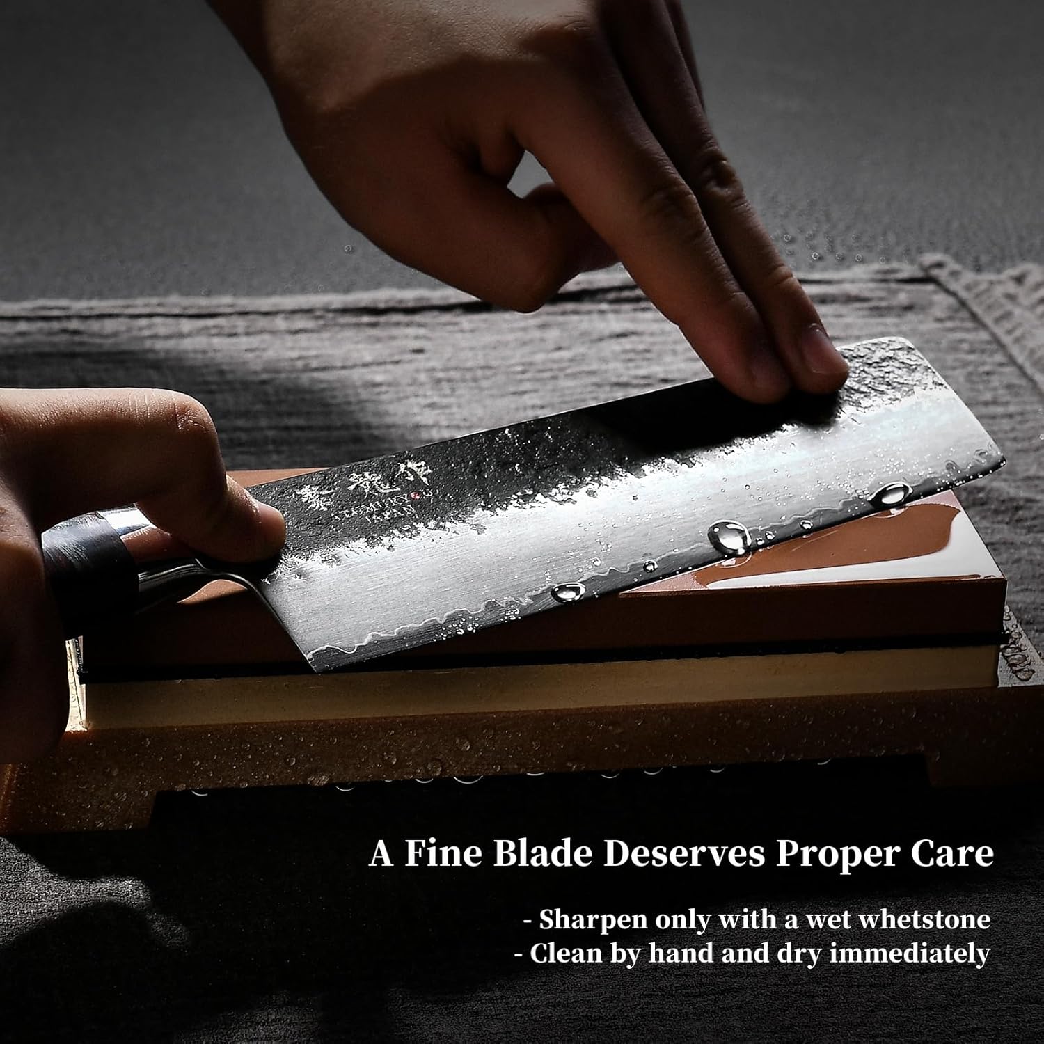 [ Traditional Hand-Forged Craftsmanship ] This nakiri chef knife is meticulously hand-forged by skilled artisans through 40 rigorous processes, effectively enhancing steel toughness. The kurouchi surface treatment provides rust-proof protection while reducing food adhesion