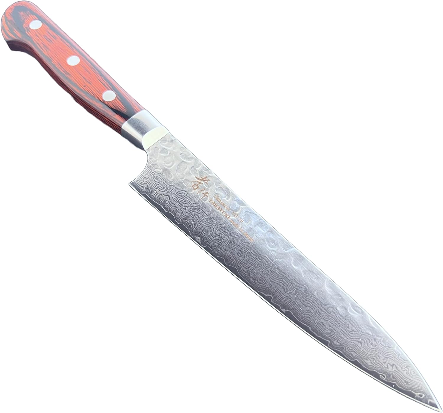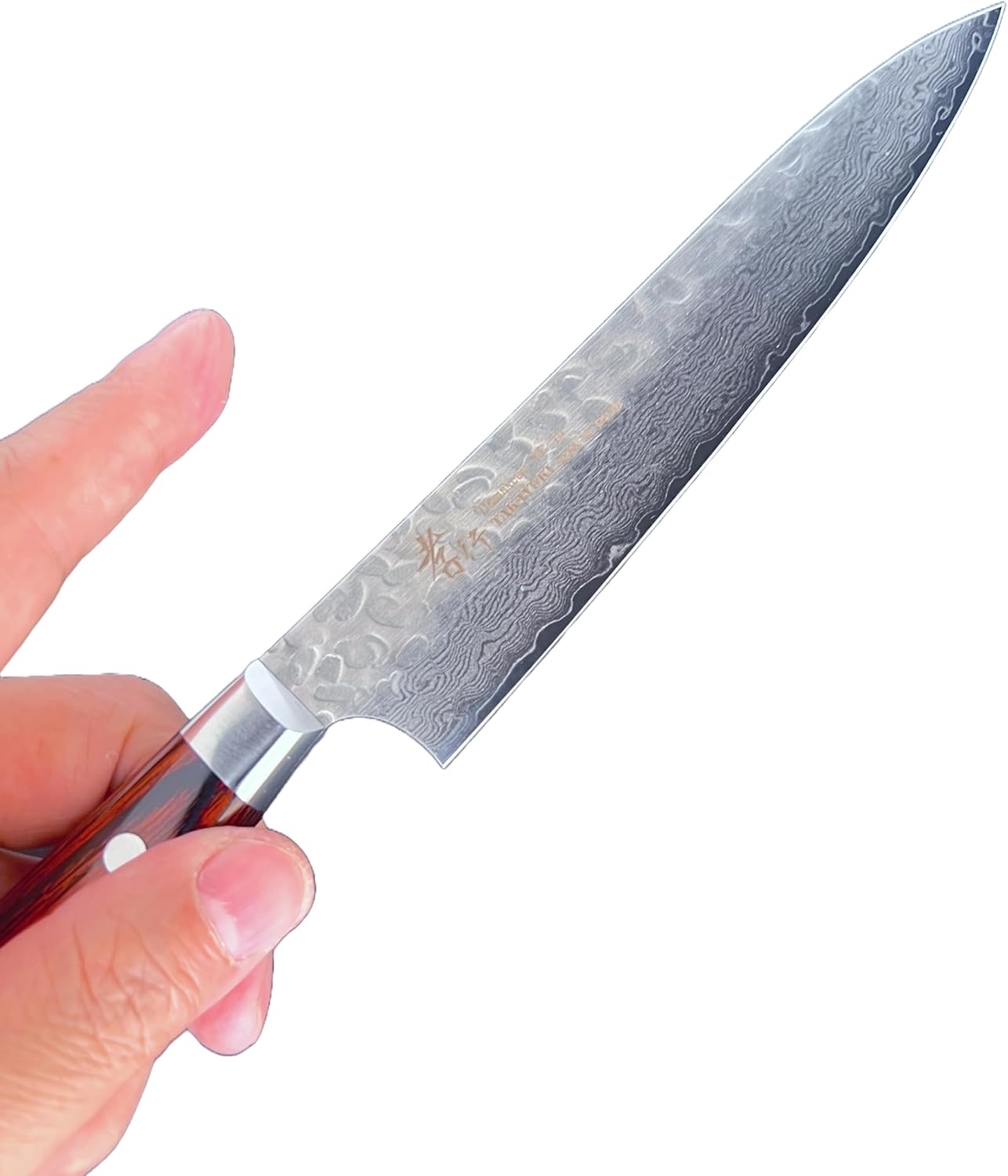 *Blade: 33-layers hammered Damascus steel (double edge) Core: VG10 (corrosion-resistant steel)