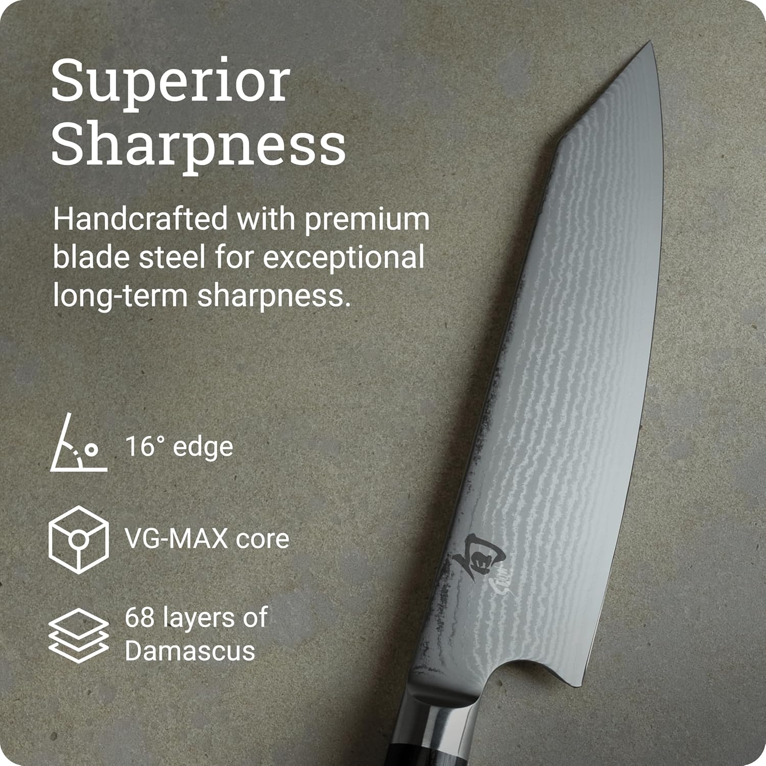 SUPERIOR SHARPNESS: Crafted with VG-MAX steel and 68 layers of Damascus cladding, this knife delivers razor-sharp precision with a 16-degree edge, ensuring long-lasting performance.