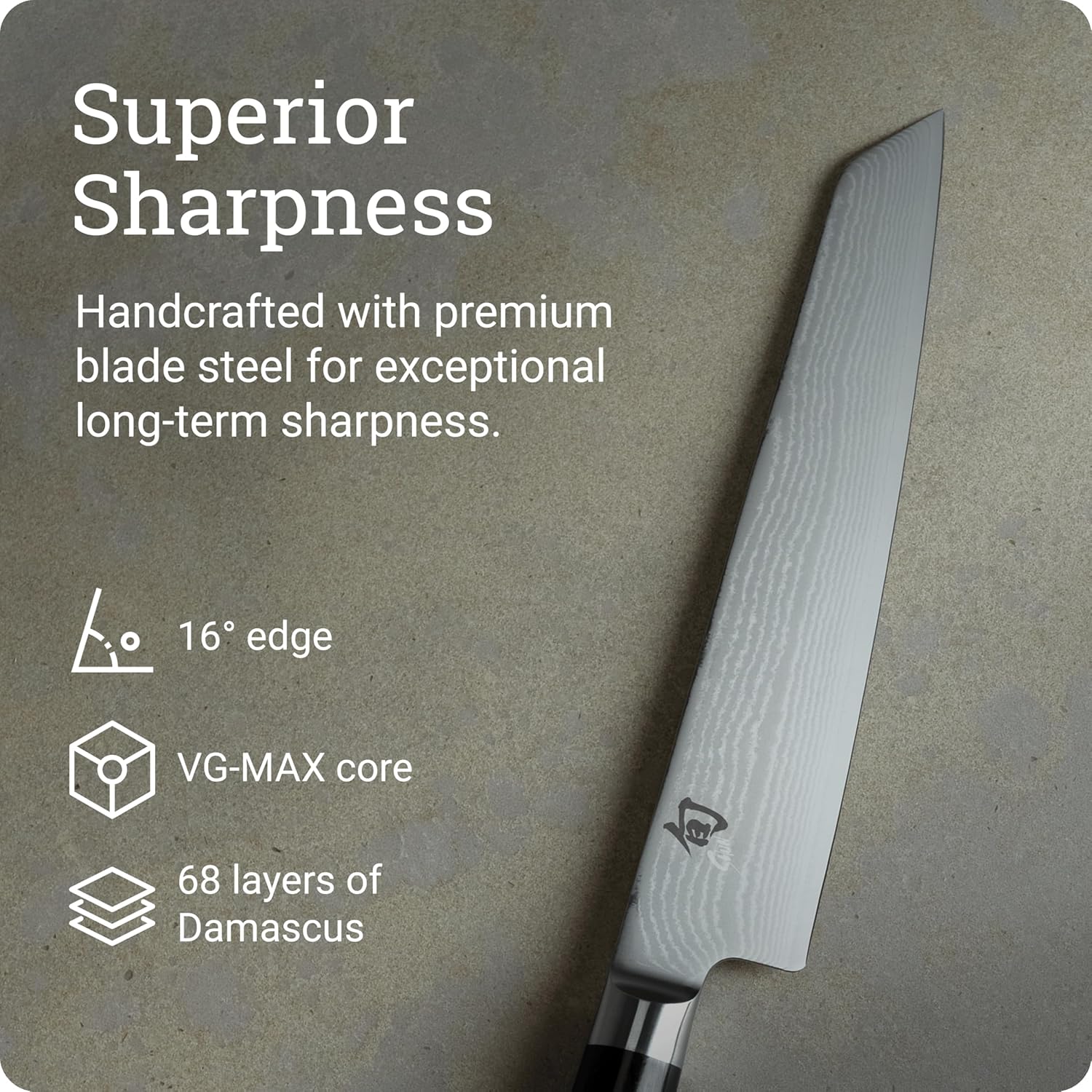 SUPERIOR SHARPNESS: Crafted with VG-MAX steel and 68 layers of Damascus cladding, this knife delivers razor-sharp precision with a 16-degree edge. Narrow, gyuto-style blade provides high maneuverability. Hollow ground edge for greater food release.