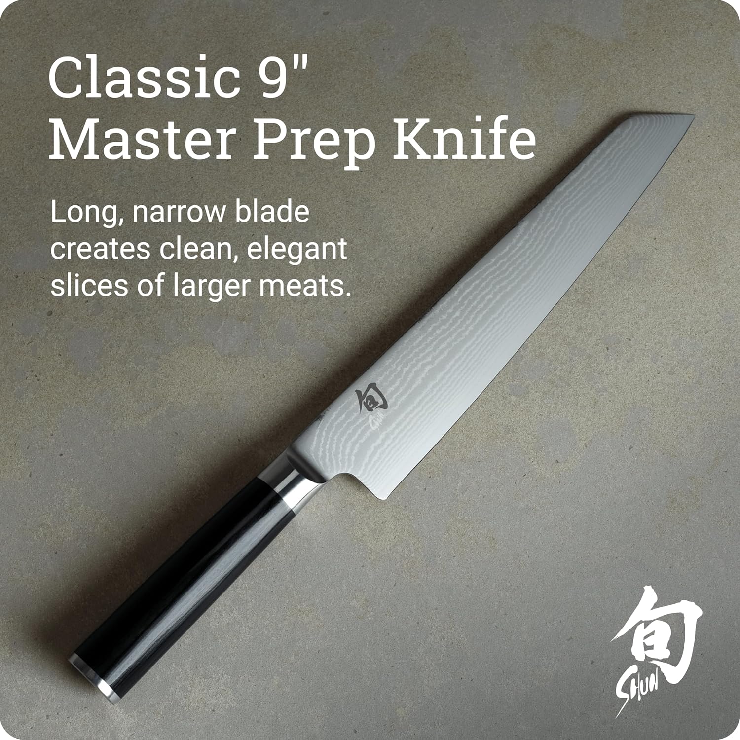 MASTER PREP KNIFE: The Shun Classic 9-inch Master Prep Knife is expertly designed with a long, blade for slicing through large cuts of meat in one pass. Wider blade and pointed tip for greater toughness and precision.