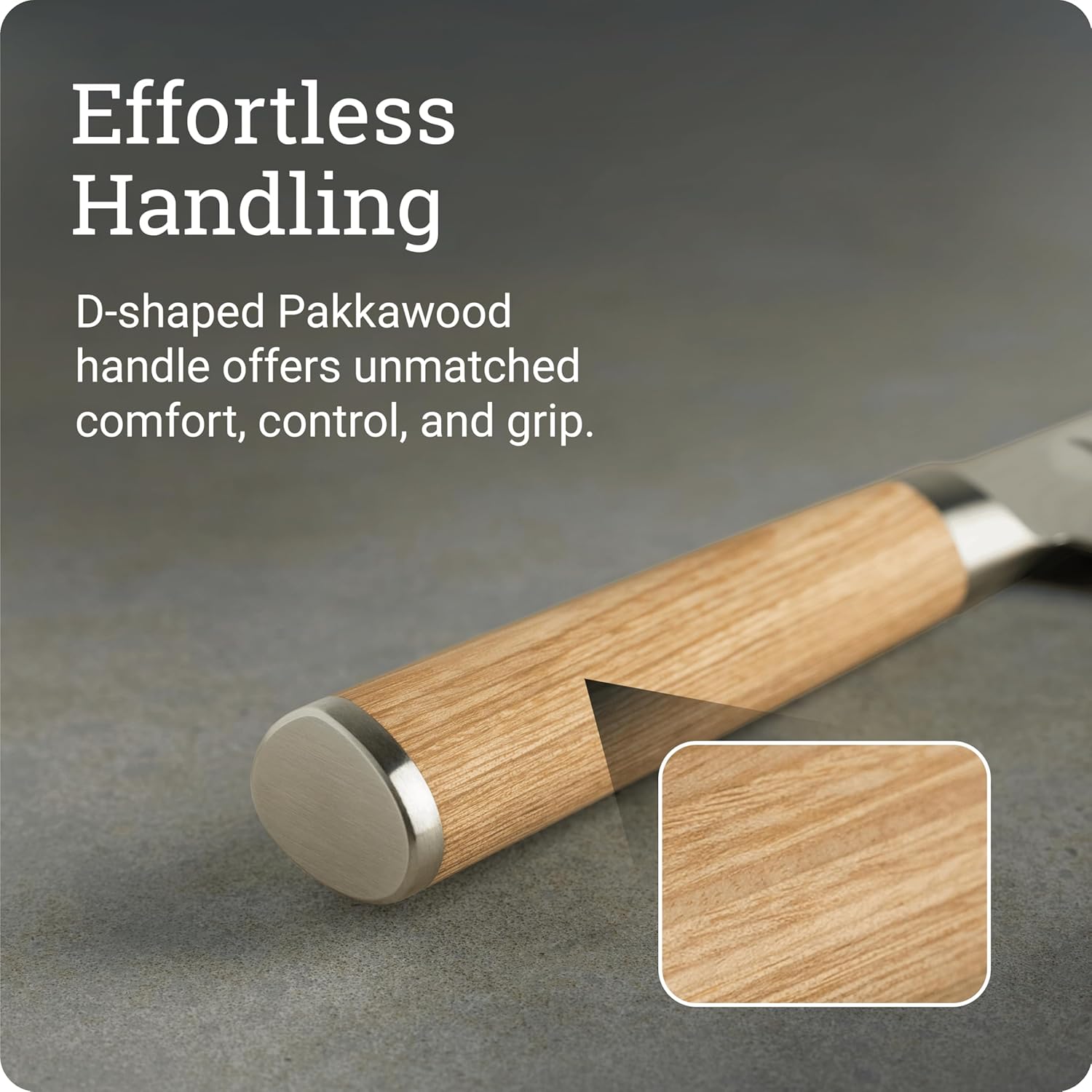 COMFORTABLE DESIGN: The D-shaped, blonde Pakkawood handle offers a comfortable and secure grip, providing optimal control for both left and right-handed users.