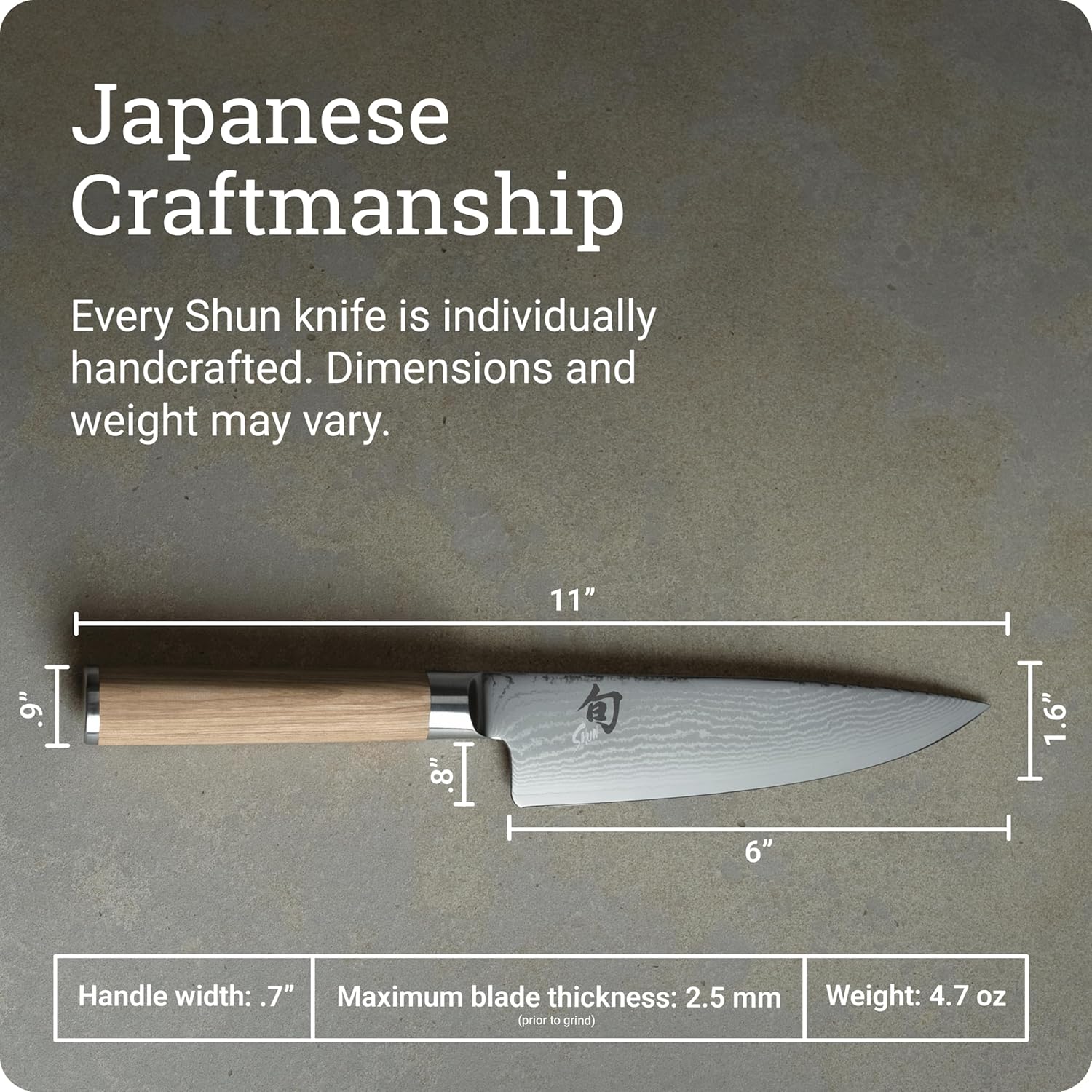 JAPANESE CRAFTSMANSHIP: Each Shun knife is meticulously handcrafted in Japan, reflecting a legacy of traditional knife-making expertise and a dedication to superior quality. Supported by free sharpening and honing.