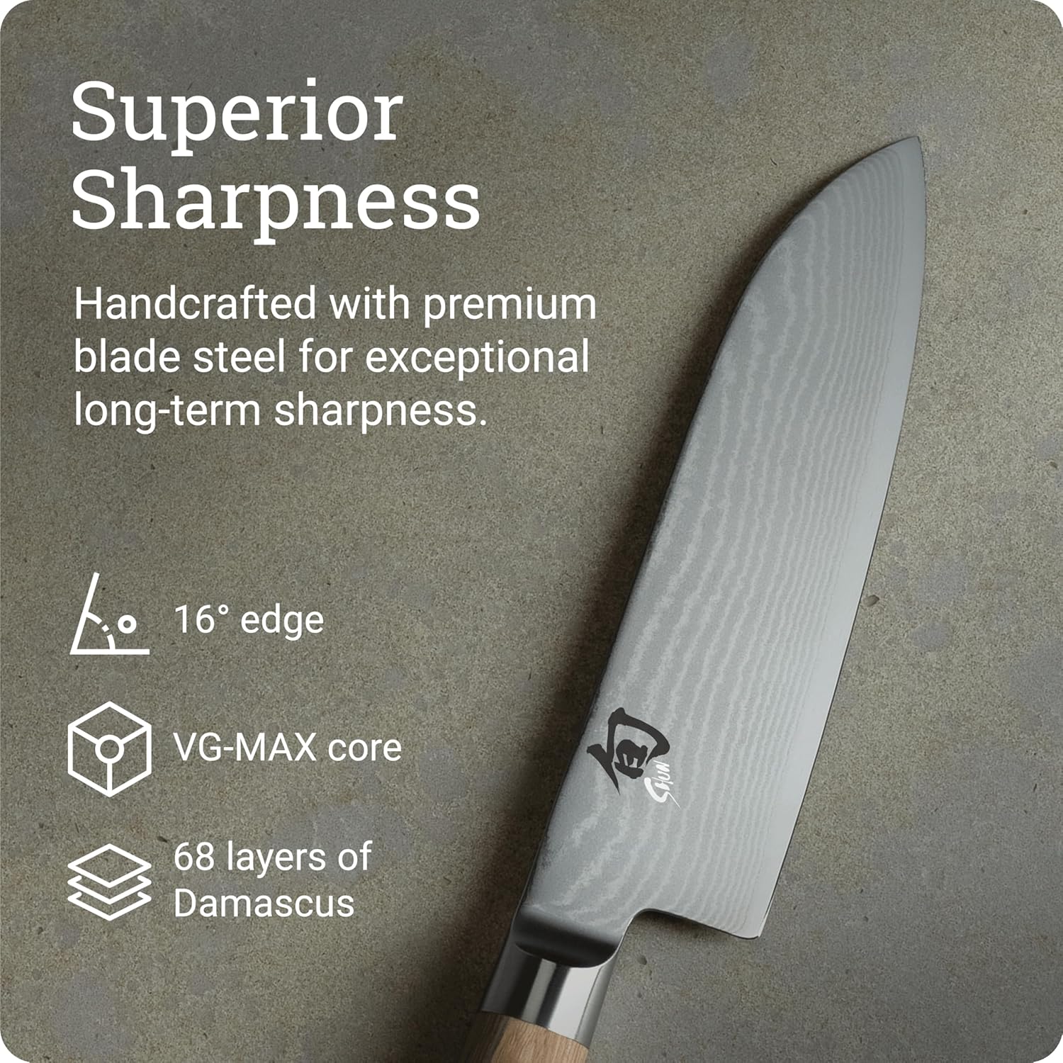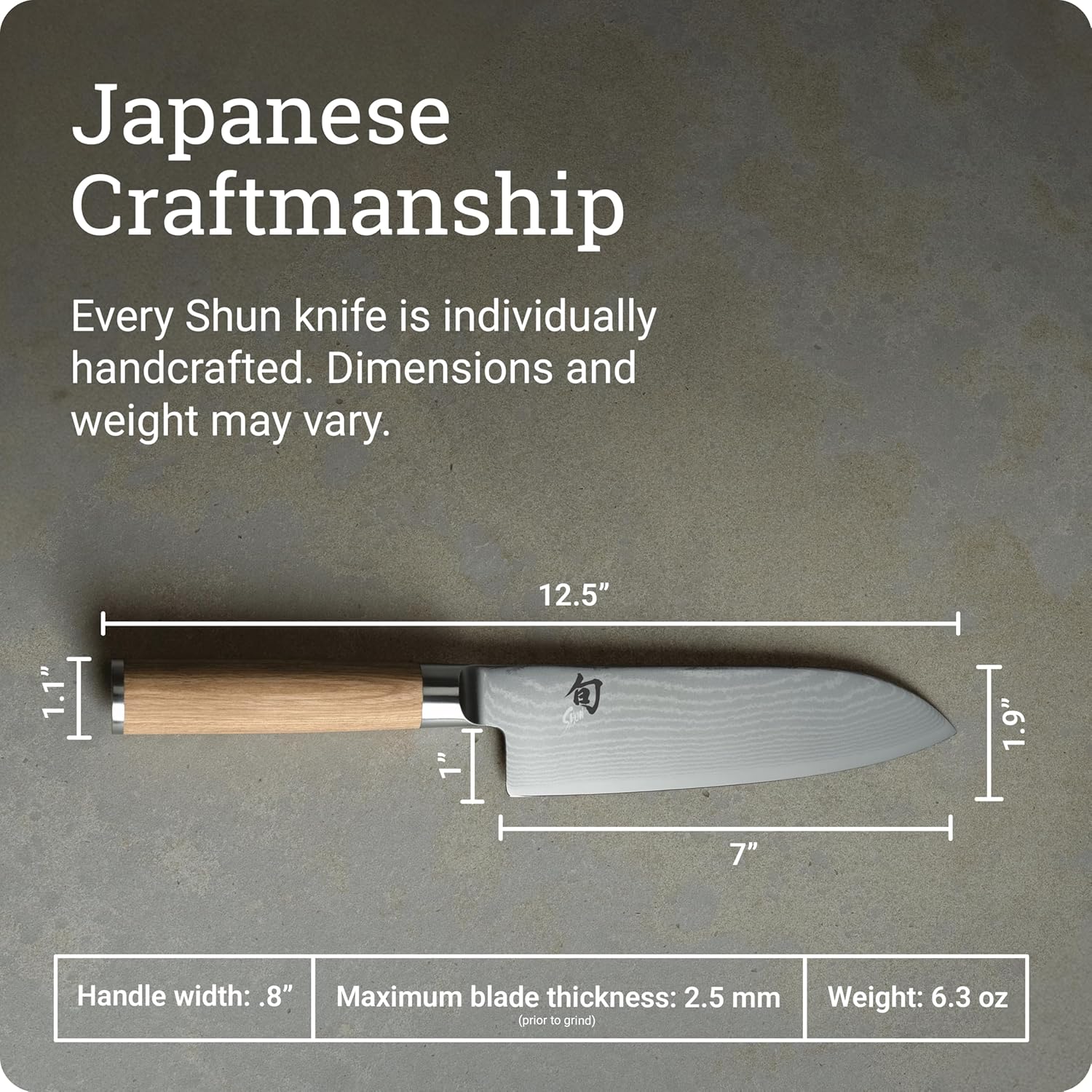 Shun Classic Blonde 7″ Santoku Knife, Handcrafted Japanese All Purpose Knife, VG-MAX Core with Damascus Stainless Steel Cladding, Pakkawood Handle, Versatile Japanese Cutting Tool