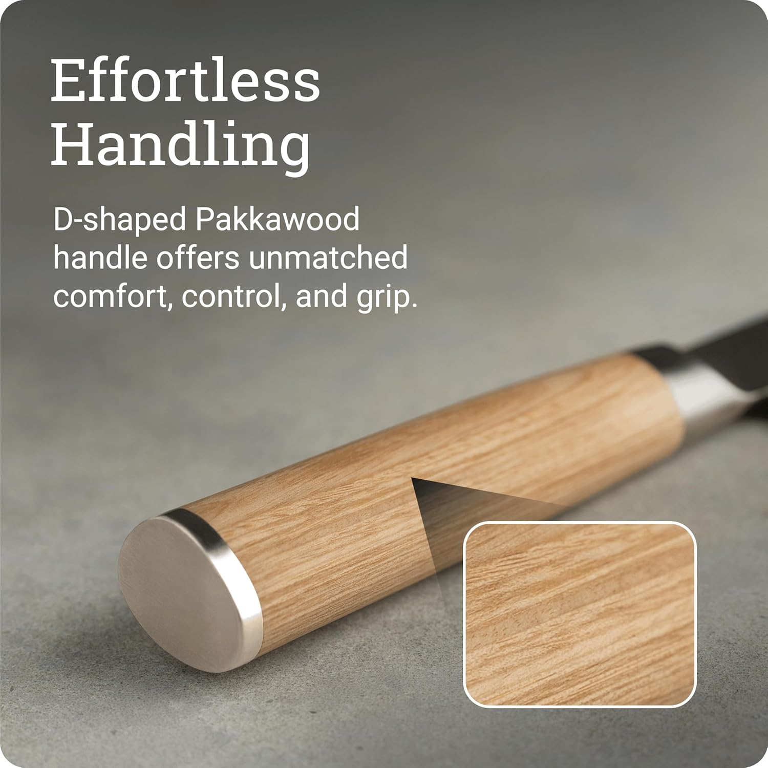 COMFORTABLE DESIGN: The D-shaped, blonde Pakkawood handle offers a comfortable and secure grip, providing optimal control for both left and right-handed users.