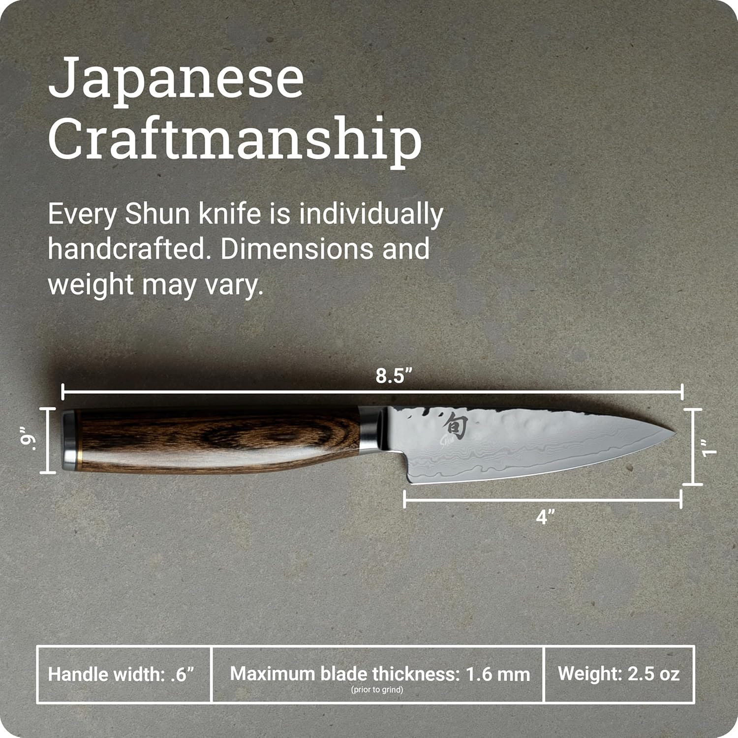 JAPANESE CRAFTSMANSHIP: Each Shun knife is meticulously handcrafted in Japan, reflecting a legacy of traditional knife-making expertise and a dedication to superior quality. Supported by free sharpening and honing.
