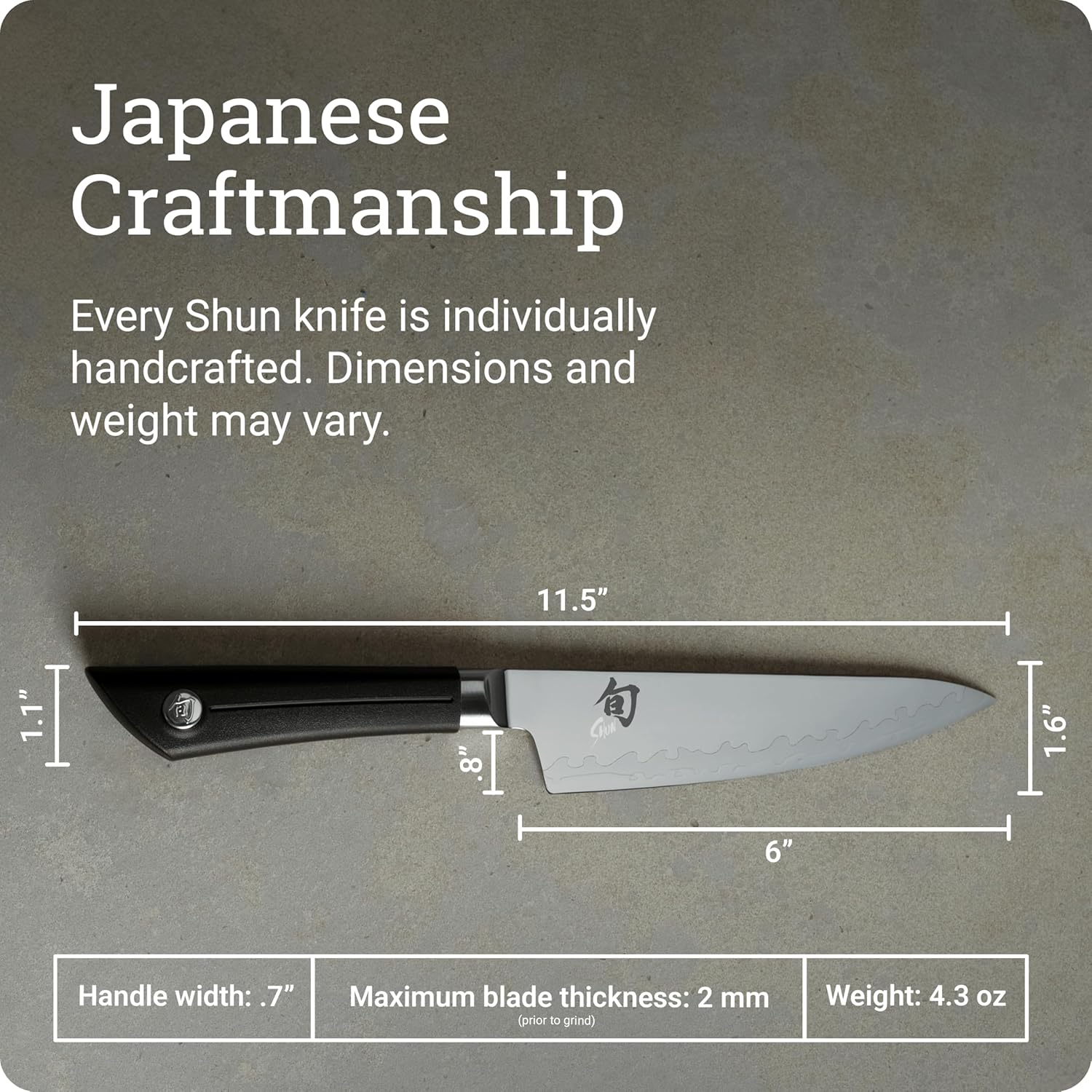 JAPANESE CRAFTSMANSHIP: Each Shun knife is meticulously handcrafted in Japan, reflecting a legacy of traditional knife-making expertise and a dedication to superior quality.