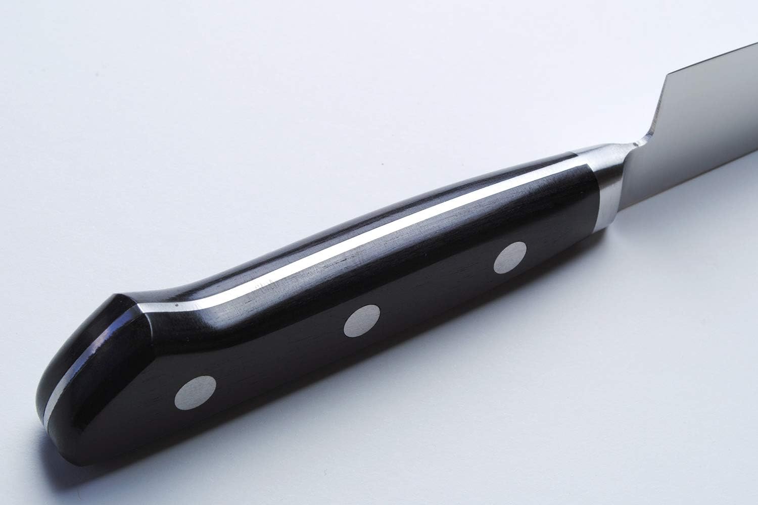 INOX AUS10 is commonly used in high-end Japanese knives and provides a good foundation to build a knife with well-rounded attributes. While very similar to AUS8, the increased carbon content in AUS10 Stainless Steel results in a knife with higher edge retention and durability. The quality of the steel together with its expert craftsmanship makes this a professional quality chefs knife with an excellent blend of razor sharpness, durability, and comfort that is unrivaled in its price range.